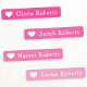 Étiquettes de vêtements mignons dans les tons roses avec un coeur de couleur blanc ou personnalisé et votre nom ou autre texte personnalisé. Vous pouvez modifier les couleurs empreinte de patte et arrière - plan à l'aide de l'outil de personnalisation.