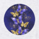 Composition des luxueux papillons saphir et bijoux en or sur arrière - plan bleu texturé.