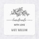 Enhance your clothing line with our editable personalized clothing tag template. Perfect for showcasing your brand name and personalized message for handmade items with script font and laurel leaf.