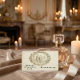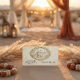 Transportez vos invités dans une époque révolue avec cet accessoire de papeterie d'inspiration antique. Il présente un design de camée romantique dans des tons sépia élégants pour une finition intemporelle. Ce design présente une composition ovale classique rappelant les sculptures sur ivoire ou les bas-reliefs du XIXe siècle. Un vignette centrale représente une mariée et un marié vêtus de costumes Régence appropriés à l'époque, se tenant par la main et marchant vers un clocher d'église rural lointain, rendu dans une palette monochrome de sépia et de crème. La scène est encerclée par une bordure de rinceaux floraux ornés de style acanthe qui imite l'aspect de la pierre taillée ou de la gravure lourde. Il s'agit d'une image imprimée plate avec un effet de faux bas-relief en pierre, et non d