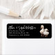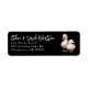Étiquettes d'adresse de retour de canards. Deux canards blancs ornent des étiquettes noires avec du texte blanc. La première ligne est un script pour les noms ou le nom de famille. L'espace d'adresse contiendra trois lignes, selon les besoins.