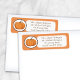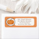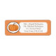 Étiquettes d'adresse de retour de citrouille orange avec une citrouille orange illustrée dans un ovale blanc avec votre nom personnalisé et adresse de retour en brun dans un rectangle arrondi blanc, sur un fond orange. Utilisez ces étiquettes d'adresse de citrouille pour célébrer la saison automne ou quand vous aimez les dessins de citrouille.