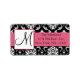 Étiquettes d'adresse de retour Damas personnalisées avec Monogramme. Copyright Elke Clarke et les concédants.