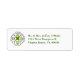 Jolie étiquette d'adresse de retour, avec un design circulaire de style celtique des feuilles, sur le côté gauche. Un trèfle à quatre feuilles au milieu de la conception correspond au texte vert. Personnalisez le texte avec votre nom et votre adresse pour une belle façon de terminer votre correspondance.