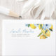 Étiquettes d'adresse de retour élégantes et douces Fleur et Citron à l'aquarelle. Avec de belles fleurs à l'aquarelle bleu ardoise poussiéreux élégantes et de doux citrons jaunes. Parfait pour une baby shower ou une bridal shower sur le thème des citrons !