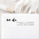 Étiquette d'adresse de retour personnalisée pour les jeunes mariés en script de brosse mixte et typographie sans-serif. Vous pouvez ajuster les couleurs pour un thème spécial, ou le laisser simple et minimal noir et blanc. Voir collection pour les articles correspondants.