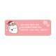 Étiquettes d'adresse de retour de vacances avec un Père Noël et un arrière - plan rose avec des flocons de neige et du texte blanc qui est facile à customiser.