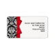 Étiquettes de adresse damassés noirs et blancs avec arc rouge. Entièrement Personnalisable. Le papier à lettres mariage correspondant est disponible dans ce magasin.