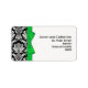 Étiquettes de adresse damassés noirs et blancs avec arc vert. Entièrement Personnalisable. Le papier à lettres mariage correspondant est disponible dans ce magasin.