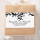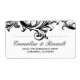 Quelque chose d'ancien et de nouveau...Des étiquettes de adresse mariages d'inspiration antique ont une typographie différente avec un ornement floral élaboré en noir orné sur le dessus d'un arrière - plan blanc. Les détails du texte sont en noir, qui sont entièrement personnalisables.
