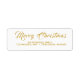 Ces étiquettes personnalisées d'adresse de retour de Noël ont des lettres de couleur or sur un arrière - plan blanc. Il dit Joyeux Noël en calligraphie ou typographie script et a un nom et une adresse d'exemple. — Remplacez l'échantillon et ajoutez votre nom et votre adresse de retour dans le modèle pour personnaliser. — Vous pouvez ajouter votre propre texte ou supprimer les mots, modifier le style de police, la couleur ou la couleur arrière - plan, ou ajuster la taille. Cliquez sur le bouton customiser ou personnaliser. — Habillez vos cartes de fin de année avec cet élégant design de Noël blanc et or. Il est entièrement personnalisable. — Voir plus d'étiquettes d'adresse de retour et d'autres produits à Alina's Pencil.