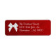 Elégant étiquette de adresse rouge foncé avec un joli arc blanc, sur la gauche, et texte de script blanc. Idéal pour vos cartes de Noël et vos invitations. Personnalisez le texte pour vos cartes de Noël et vos invitations.
