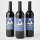 Étiquettes de bouteille de vin présentant un graphique de dessin animé amusant d'un bonhomme de neige dans un cadre hivernal. Personnalisez complètement en ajoutant le nom de votre entreprise et d'autres coordonnées. Étiquettes de cadeau d'entreprise pour Noël.