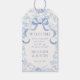 Étiquettes de cadeau de bienvenue de mariage floral à ruban bleu Toile