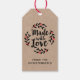 Un autocollant personnalisé "fait avec amour" sur un fond de couleur kraft. Caractéristiques d'une belle couronne de baie et les mots "fait avec amour" dans une police de caractère élégante. Le dos de l'étiquette a un fond aquarelle rouge. Une belle touche finale pour tous vos cadeaux faits main. Conçu pour vous par Blackberry Boulevard.