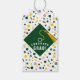 Étiquettes de cadeau de félicitations de fin d'études créatives et faveurs de fête de fin d'études, avec une casquette verte et un gland doré sur fond de confettis. Modifiez le texte pour ajouter le nom du diplômé et l'année de la promotion.