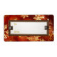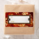 Flocons de neige dorés sur fond rouge avec les mots À et DE Étiquettes de cadeau de vacances.