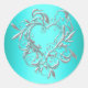 Étiquettes rondes et sceaux d'enveloppe élégants de couleur bleu sarcelle argentés en forme de coeur.