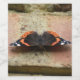 Cette étonnante feuille de étiquettes de bouteilles de vin présente une photo d'un magnifique papillon de l'amiral rouge (Vanessa atalanta). Cette espèce est principalement noire avec des taches blanches et de belles bandes rouges sur ses ailes. La photo montre le papillon, avec ses ailes larges ouvertes, reposant sur un mur de briques en regardant la caméra. La photo a été prise en utilisant la macro photographie pour un résultat détaillé.