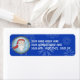 Étiquettes d'adresse de retour de vacances avec un Père Noël et un arrière - plan bleu avec des flocons de neige et du texte blanc qui est facile à customiser.