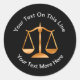 Étiquettes d'autocollants de message Classy Attorney avec le texte qui suit la forme ronde de l'autocollant que vous pouvez customiser en ligne. Conçu pour un avocat pour promouvoir votre marque, promouvoir un message ou un événement spécial et est créé avec une échelle de ton or de la justice.