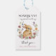 Remerciez vos invités de baby shower avec ces étiquettes de remerciement assorties. Attachez-les à vos faveurs, cadeaux, friandises de baby shower et plus encore. Ce design présente un délicat bouquet de couronne de fleurs sauvages peintes à la main entourant un adorable lapin bébé. Une combinaison charmante de polices modernes et rustiques complète ce doux design. Voir la collection complète pour plus d'articles assortis !