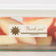 Étiquette de remerciement waterproof à texte or, aspect professionnel. La conception présente 5 étoiles de couleur or sur le devant et la possibilité de la personnaliser. Ajoutez votre logo ou photo. Parfait pour les entrepreneurs et les entreprises à utiliser sur les emballages et les expéditions. Cliquez sur le lien "personnaliser davantage" et utilisez notre outil de conception pour modifier ce modèle. Disponible en plusieurs couleurs.