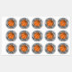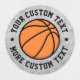 Des autocollants ronds avec un ballon de basket au milieu avec votre texte personnalisé enroulé autour.