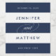 Modernes et légèrement nautiques à rayures bleu marine et blanches, ces étiquettes de vin mariage sont parfaits pour vos tables de réception, vos faveurs ou vos sacs de bienvenue. Le design présente vos noms en lettres modernes flanqué de votre date mariage et de la variété de vin ou d'autres informations de votre choix.