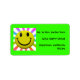 Le bouton classique jaune et noir d'origine fait une étiquette d'adresse de retour gaie. Un arc-en-ciel de rayons solaires colorés derrière le visage ajoute à la gaieté lumineuse. Modifiez facilement le style et/ou la couleur de la police de texte pour customiser. L'arrière - plan vert vif et dynamique ajoute un joli contraste au texte noir. Changez facilement l'arrière - plan. Il suffit de cliquer sur "Customiser", puis sur "modifier", puis sur "arrière - plan" pour changer de couleur si vous le souhaitez. Envoyez un sourire ensoleillé, inspirant et motivant avec votre courrier! Trois tailles de étiquettes sont disponibles.