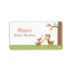De mignons étiquettes de baby showers animaliers de bois pour décorer et correspondre à ce thème de fête! Cette conception est accompagnée d'une mignonne paire de cerfs-mères et d'enfants, d'un doe et d'un faon. Des tulipes rouges et des fleurs de marguerites blanches décorent le pâté de gazon. Un oiseau bleu est perché sur la branche de l'arbre avec des feuilles colorés. Personnalisez facilement avec votre message de fête.