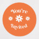 Ajoutez une touche rétro à vos invitations et à vos faveurs avec ces étiquettes d'invitation de marguerite orange et blanc qui est parfait pour bachelorette et douches nuptiales! Il présente des marguerites orange super inspirées des années 70 et une police d'inspiration tendance et rétro-moderne.