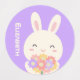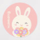 Joli lapin de dessin & Fleurs Nom personnalisé Pastel Étiquettes roses