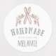 Ensemble de étiquette autocollant parfait pour les fabricants, les entreprises ou les particuliers qui fabriquent des produits et des produits artisanaux. Trois modèles d'autocollants coordonnés avec nos flores dessinées à la main et nos ciseaux graphisme dessin avec "Fabriqué à la main avec amour par" affiché dans un style stylisé texte appariement. Personnalisez avec votre nom et votre monogramme. Remarque : les couleurs peuvent être modifiées en fonction de votre préférence de conception et de l'image de marque. Oeuvre de Moodthology.