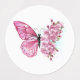 Flower arrangement of pink butterfly with rose Japanese cherry blossoms on white background.