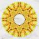 Une fractale kaléidoscope formant une étoile dentelée dans les tons or et jaune.