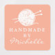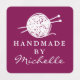 Handmade wool knitting symbol custom DIY clothing Labels. Elegant template with bundle of yarn and needles. Custom color background. Classy DIY labels for hand made clothes, scarfs, gloves, art, toys, trendy accessories and more.