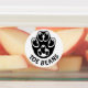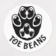 Une patte noire avec des haricots noirs comme orteils, avec le texte "Fèves d'orteil", sous la patte.