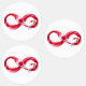 Infinity symbole of continuous stream of red pouring into glass glass glass on white background.