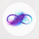 Infinity symbole with a beautiful feather painted in purple and blue bright colors on white background