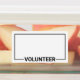 Blank Volunteer Name Badge Étiquettes avec le titre "Volunteer" en noir gras sans serif police avec espace vide pour nom personnalisé sur arrière - plan blanc avec bordure noire. Aussi parfait pour les stagiaires, l'équipage, le personnel, le groupe, l'équipe et plus.
