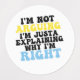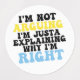 Faites clairement ressortir votre point (avec un côté d'humour) avec cet autocollant audacieux et plein d'esprit ! Avec l’expression "Je n’argumente pas, je ne fais qu’expliquer pourquoi j’ai raison" dans les polices jaunes, noires et bleues à bulles accrocheuses, cet autocollant est parfait pour tous ceux qui aiment le sarcasme et la confiance. Idéal pour les ordinateurs portables, les bouteilles d'eau, les carnets, ou n'importe où vous voulez montrer votre côté malsain ! Fabriqué avec des matériaux imperméables de haute qualité, cet autocollant est durable et durable, ce qui en fait un ajout amusant et pratique à votre collection. Disponible en plusieurs tailles pour convenir à votre style.