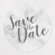 Script moderne Save the Date Étiquettes avec le titre "Save the Date" en gris police de caractères modernes sur arrière - plan en marbre blanc.