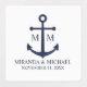 Ajoutez une touche élégante à votre mariage nautique avec ce étiquette de mariage classique bleu marine ancre marine. Conçu avec une illustration d'ancre bleu marine, il présente un monogramme personnalisé de mariée et de mariée, le nom et la date du mariage dans une police serif bleu marine sur un arrière - plan blanc. Parfait pour les mariages nautiques, les mariages sur la plage et plus.