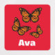Monarch Butterfly Design - Personnaliser le nom Petit Carré Étiquette de vêtements rouges (0,75 po x 0,75 po)