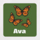 Monarch Butterfly Design - Personnalisez le nom Petit Étiquette de vêtements vert de forêt Carré (0,75 po x 0,75 po)