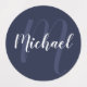 Étiquettes Monogramme et nom personnalisés de Navy Blue Scrip
