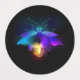 Vieux, luciole mécanique avec ampoule et ailes fines brille orange, violet, turquoise sur arrière - plan noir. Style Steampunk.