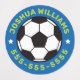 Aquarellé, rond de terrain de football étiquettes en gris foncé, vert et bleu avec nom personnalisable et numéro de téléphone. Idéal pour étiqueter les effets de votre enfant.