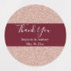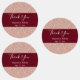 parties scintillant d'or rose avec mariage bordeaux merci étiquette. Le design se compose d'une texture de parties scintillant dorée rose et d'une bande bordeaux au centre. Vous pouvez le customiser avec les détails du mariage.